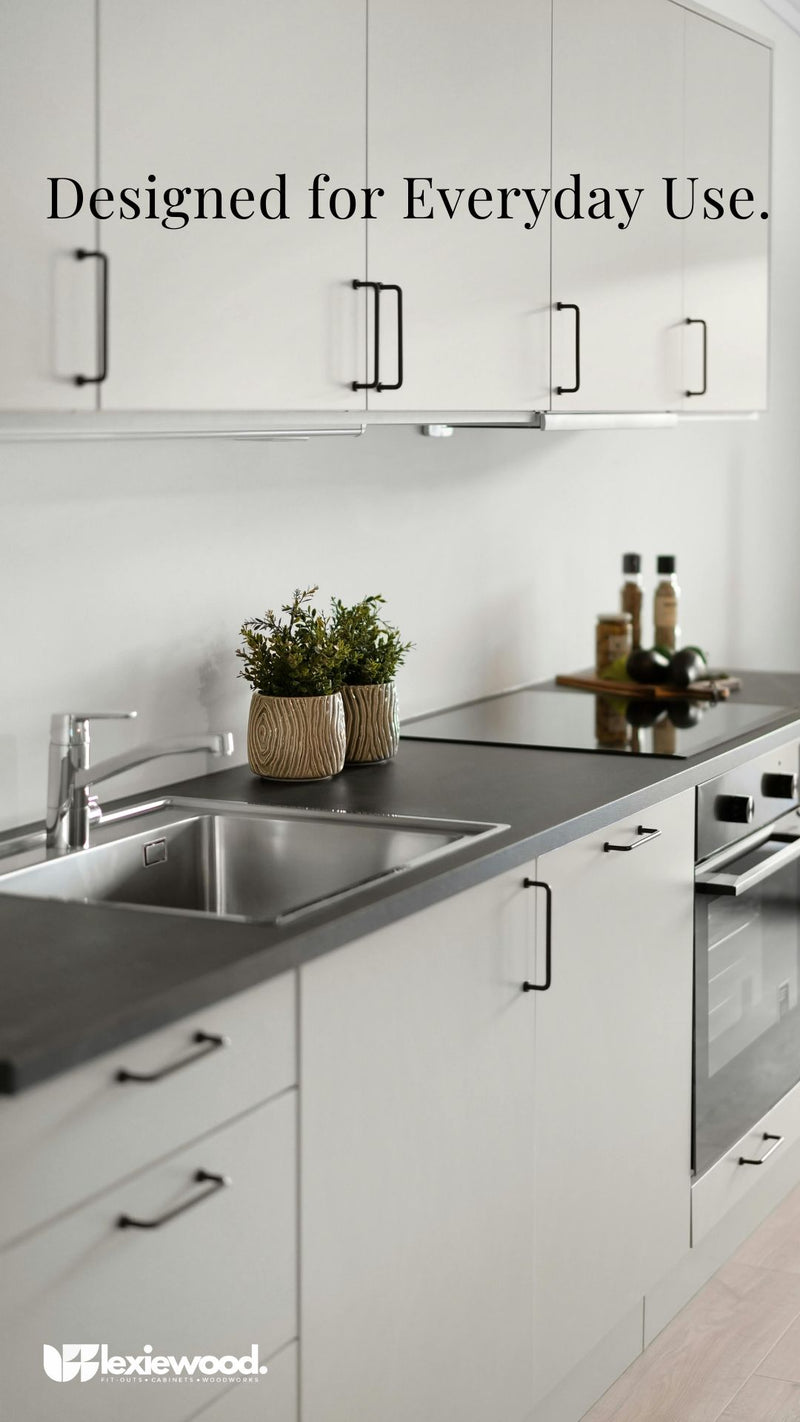 Our custom kitchen cabinets are crafted from premium-grade materials designed to withstand daily use while maintaining their beauty for years to come. We use solid wood construction, high-quality plywood, and durable hardware that ensures smooth operation and longevity. Each cabinet component is precision-engineered for perfect alignment and professional results, even for DIY installers.